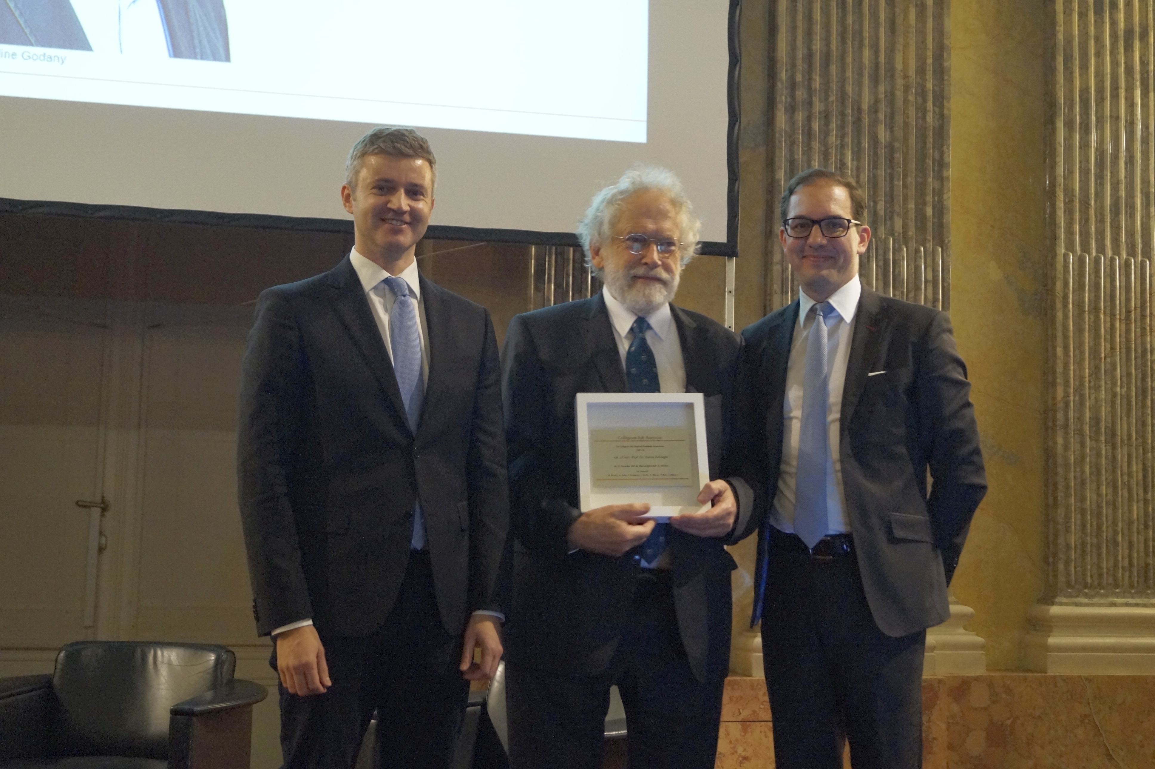 Am 22. November 2019 fand im historischen Festsaal der Österreichischen Akademie der Wissenschaften im ersten Bezirk in Wien der feierliche Festakt unseres Collegiums vor etwa 100 Gästen statt. Nach Begrüßung und Vorstellung des Vereins durch den Obmann wurden BP a.D. Dr. Heinz Fischer und Univ.-Prof. Dr. Anton Zeilinger die Ehrenmitgliedschaften verliehen. Die beiden neuen Mitglieder hielten jeweils eine Ansprache: „Die Promotion Sub Auspiciis im Wandel der Zeit“ (Fischer) und „Wissenschaftliche Exzellenz in Österreich“ (Zeilinger).
